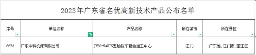 我司研发生产的“JK50-5AXIS五轴铣车复合加工中心”产品,2023年通过了广东省名优高新技术产品认定。