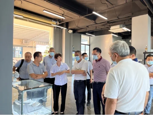 8月15日,江门市政协副厅级领导、智能装备产业链链长伍培进先生率领市工信局、人社局、蓬江区、滨江新区及棠下镇相关领导莅临我司调研指导,公司副总经理兼财务部经理周淑芬女士接待了调研组一行。在周淑芬女士的带领下,调研组一行参观了我司产品展厅及生产车间,详细了解产品的技术含量、性能、用途与市场情况,调研组一行对我司的主导产品——五轴数控机床系列适应高端市场的需求,表示充分肯定。